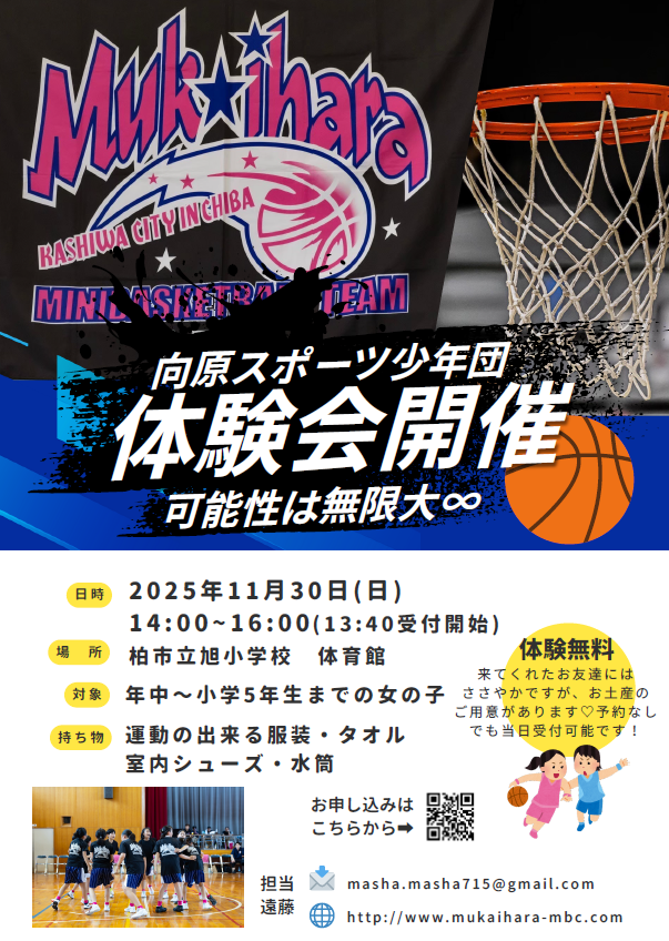 ぜひ向原ミニバスケットボールクラブの体験練習に来て下さい!